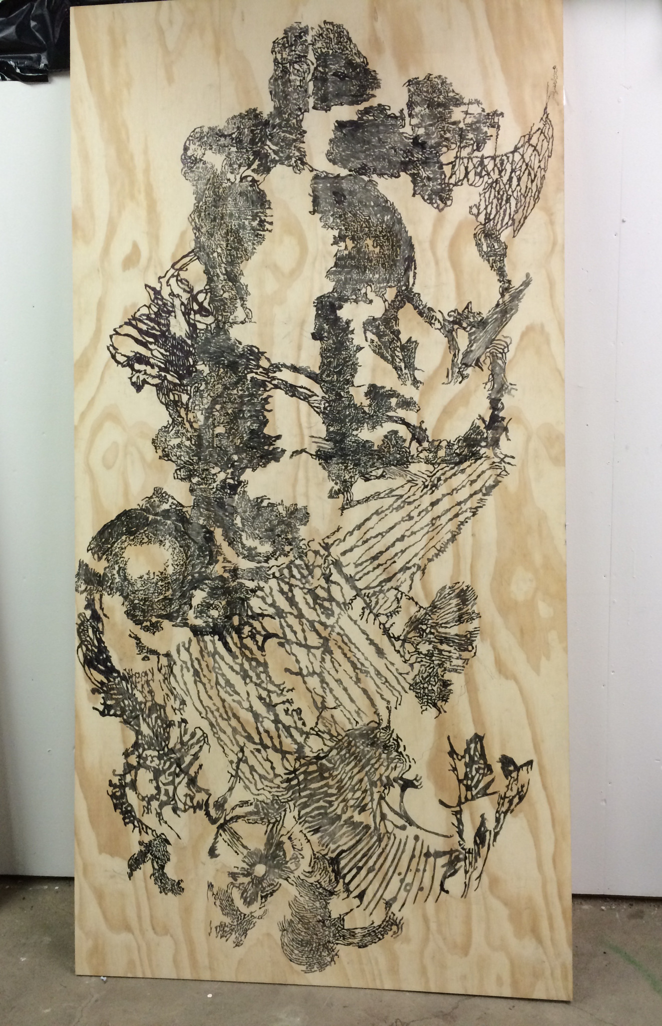 I will further explore the phenomenon of Pareidolia and encourage its operation within my painting. Pareidolia is the psychological tendency to discover recognizable forms, patterns, faces, etc. within our surroundings where there seemingly are none. I am reminded of Antonin Artaud’s amazement in finding recurring rock-figures while journeying through the canyons of Northern Mexico in 1936 in his memoir The Peyote Dance: “Between the mountain and myself I cannot say which was haunted, but in my voyage across the mountain I saw an optical miracle of this kind occur at least once a day.”