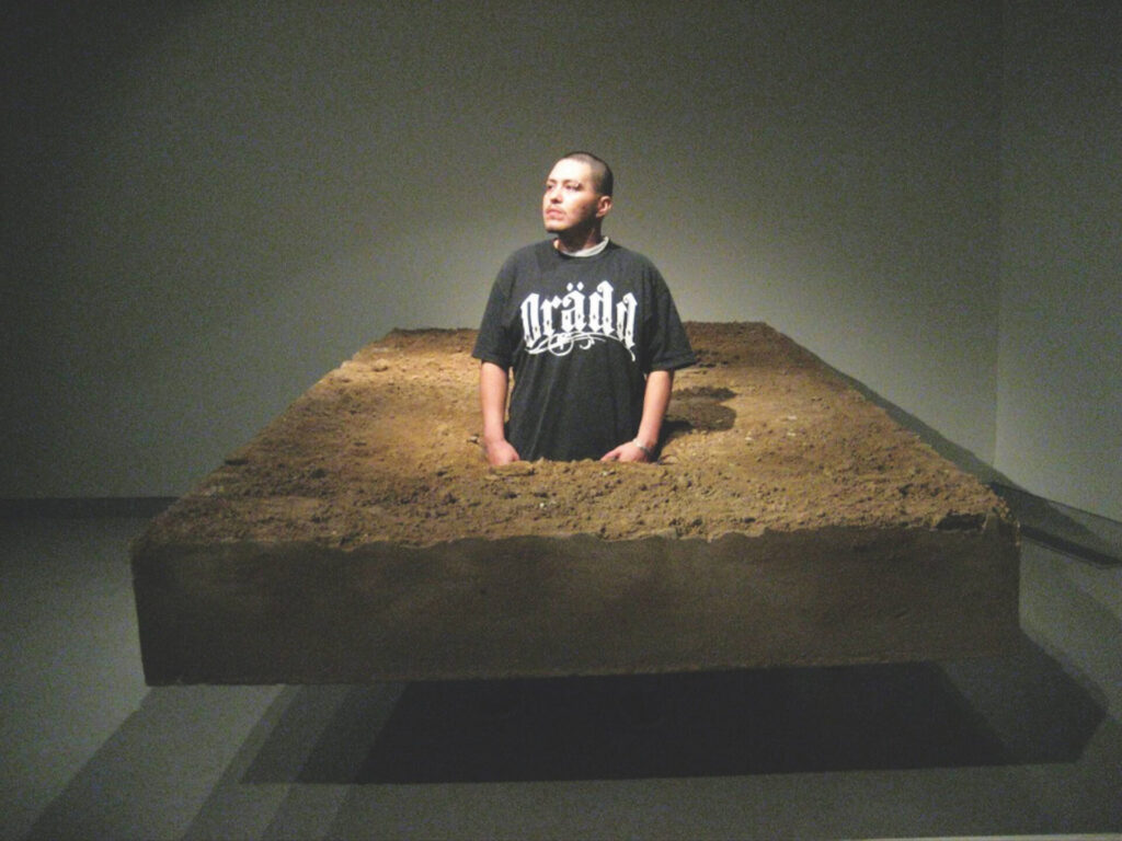 My current body of work temporarily places the figure within sculptural installations of construction-type frameworks such as beds of dirt, objects suggesting basic shelter, and towers created out of drywall, found objects, wood, and cement. Shifting between the traditions of painting, sculpture, and performance, the work focuses on the ritualistic aspects of theater along with public and architectural intervention, art education, and community collaboration in shared authorship. Through the act of “making” we collectively navigate towards a visual language that makes sense to us all. It is bold, unapologetic, and site-specific, inviting magic into logical moments of uncertainty. If indeed art is to inspire change, it is precisely when it demonstrates the ability for humans to feel by enacting a dignified rage and a level of empathy not visible until the arts participate.