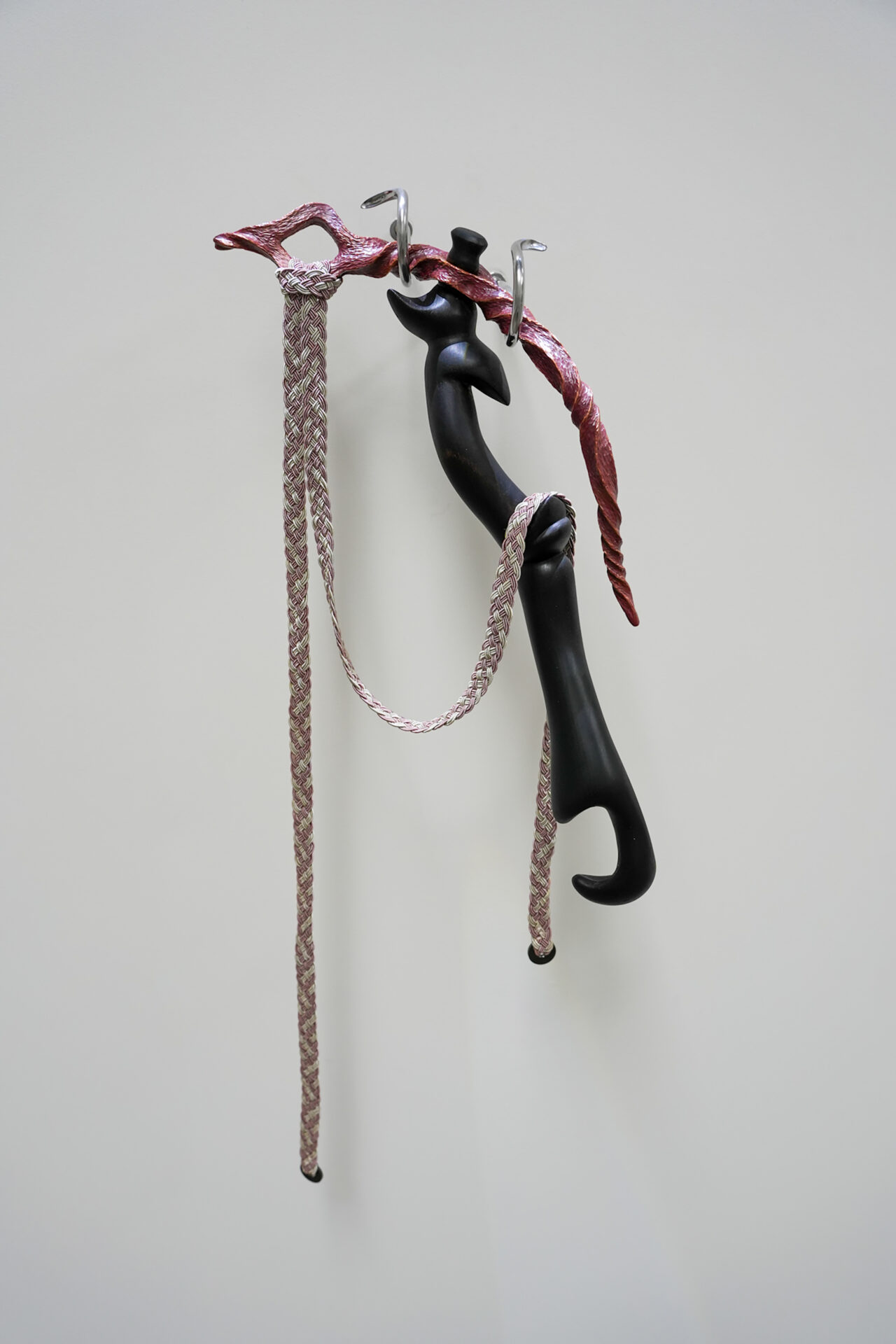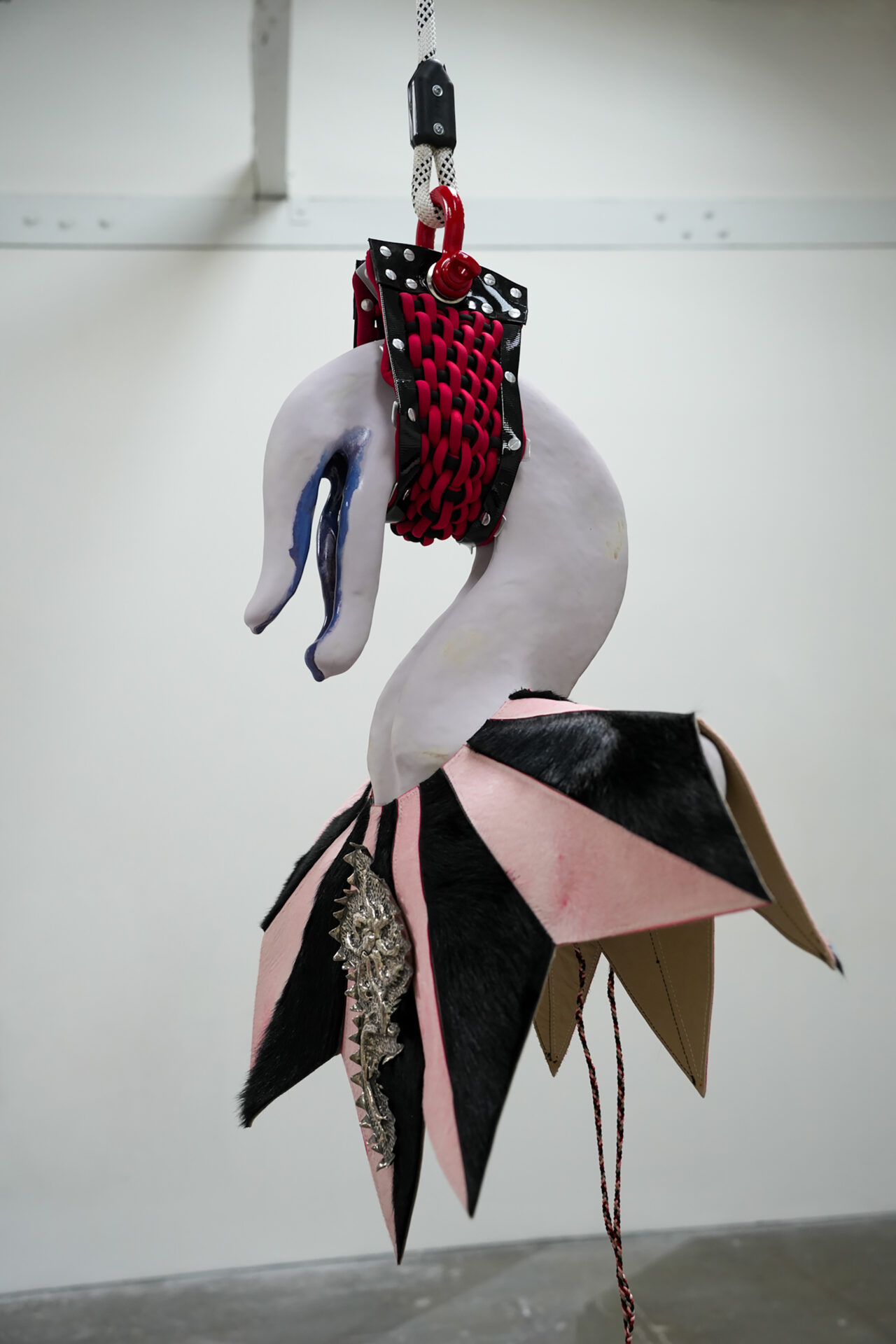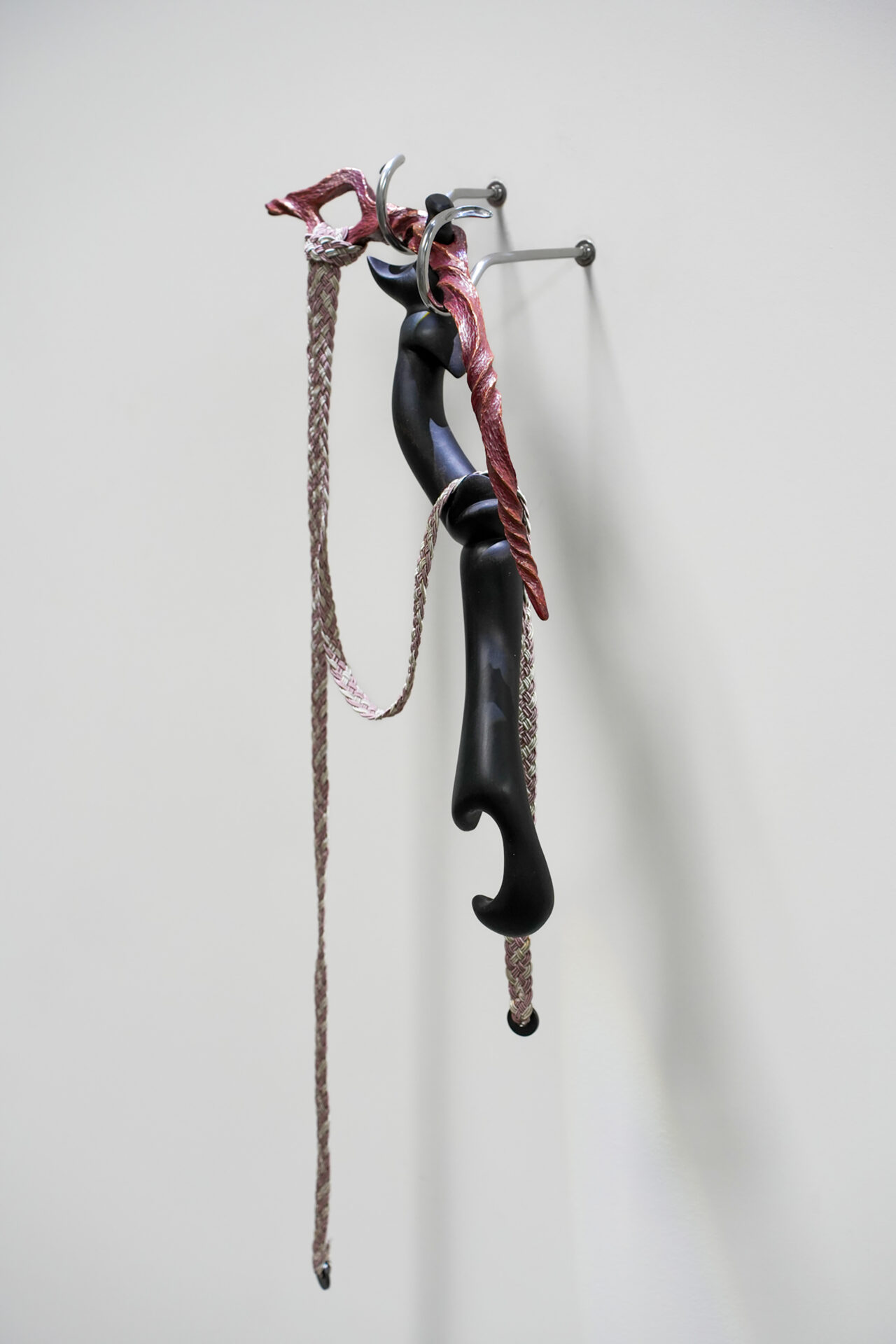 I create sculptural props: objects that have an aura of narrative without collapsing into Story. Beginning with a form that charms and repels me, I collapse my experience of that form into the prop in its slanting articulation. I am drawn to the gaudy tool and the utilitarian adornment; I love side chairs that were never intended to be used. I celebrate craft, queerness, and the pathetic. A technical mistake is always an opportunity for adornment; adornment is always an opportunity to be gay. I am seeking out a soft pivot in service of a queer liberation. To use these works to build a common vocabulary of slanted signifiers to point towards what that liberation might look like. Through sculpture, I circumscribe fantasies that are both familiar and secret.