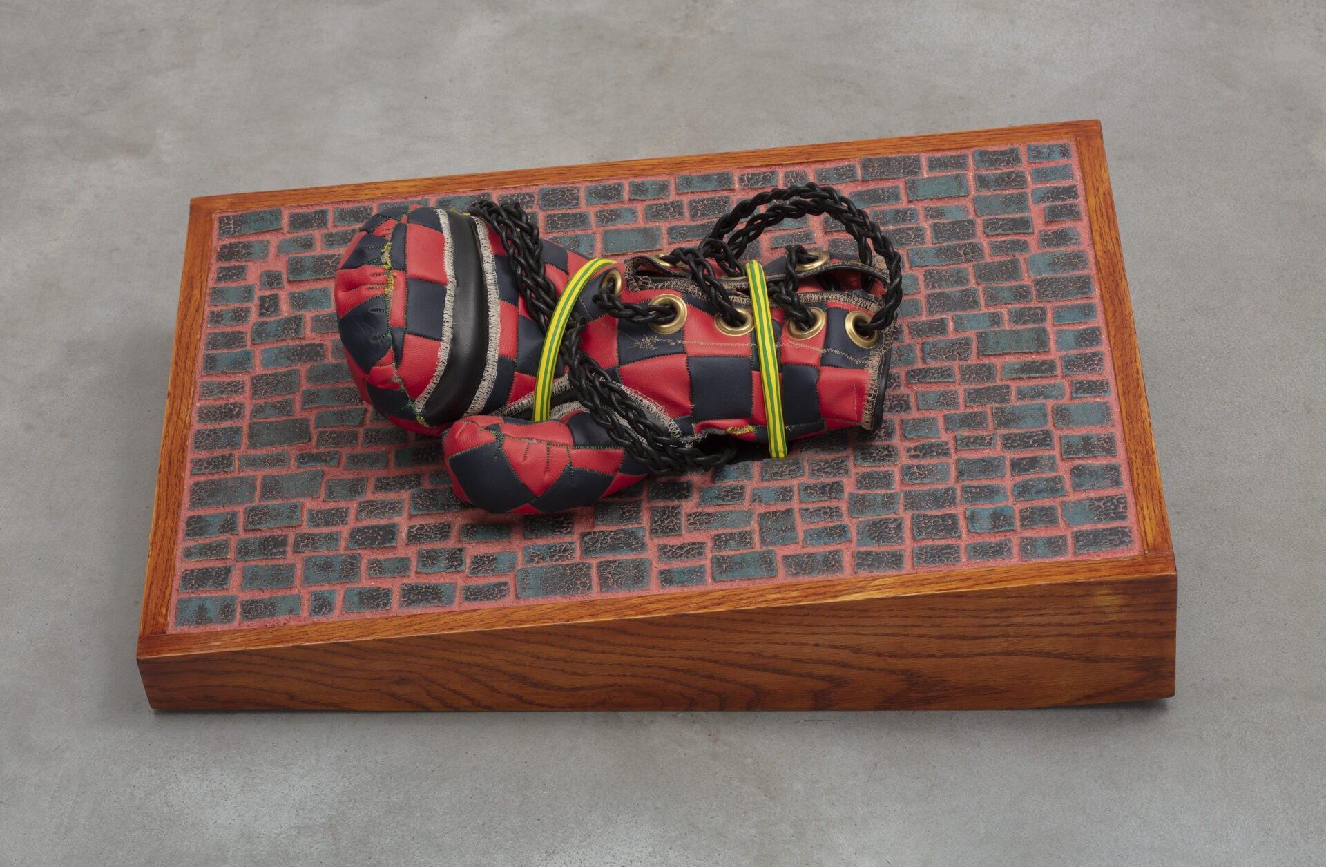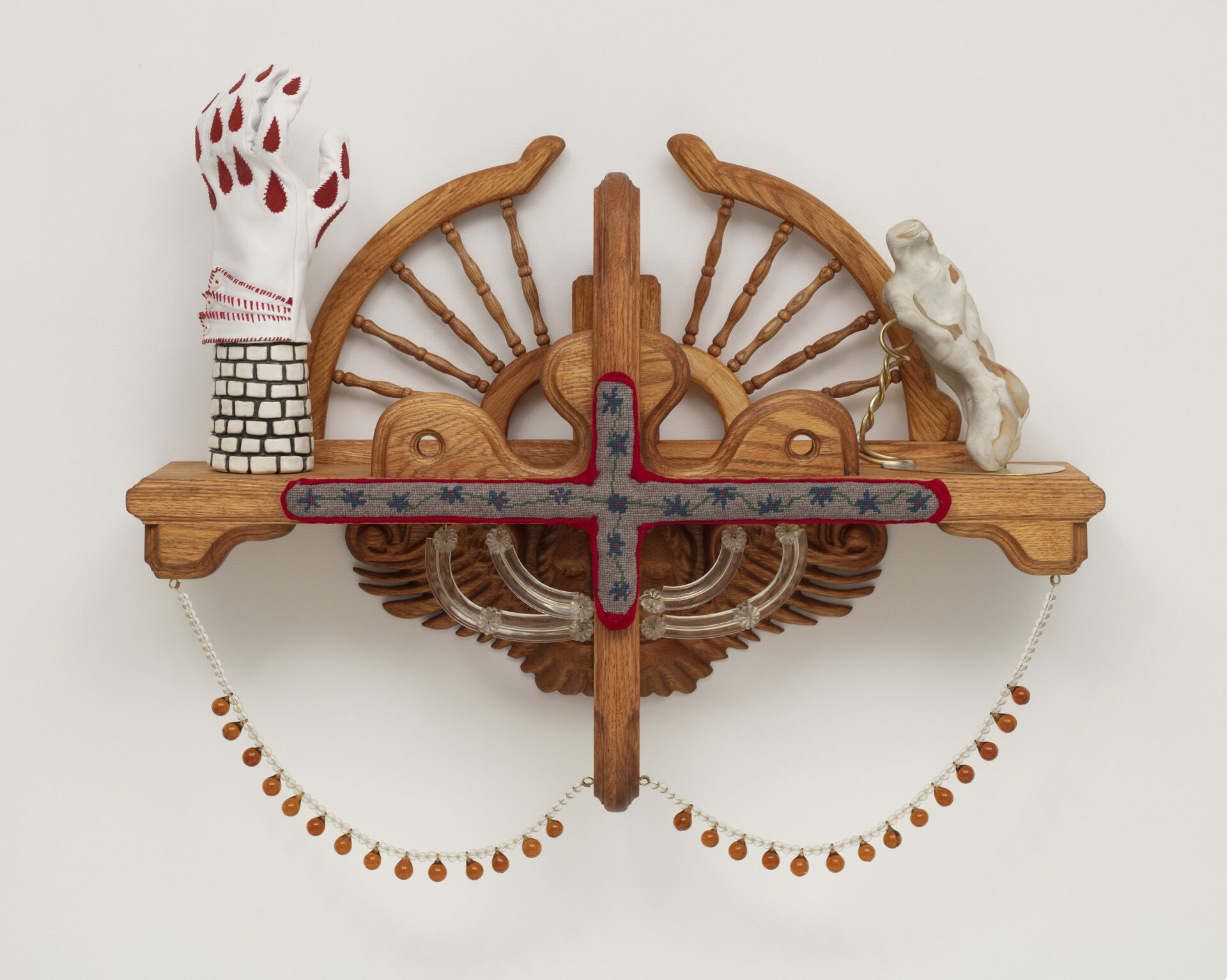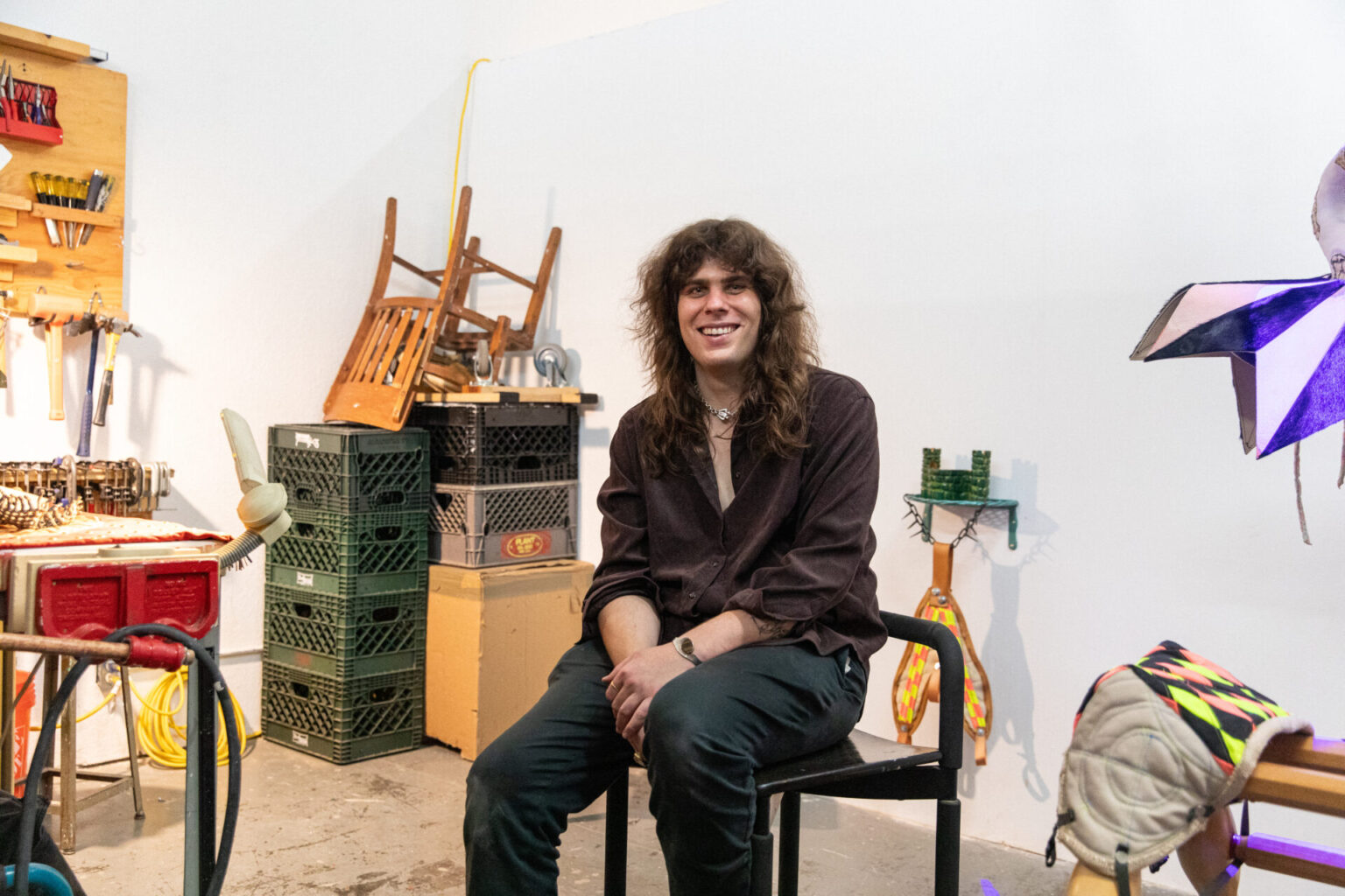 I create sculptural props: objects that have an aura of narrative without collapsing into Story. Beginning with a form that charms and repels me, I collapse my experience of that form into the prop in its slanting articulation. I am drawn to the gaudy tool and the utilitarian adornment; I love side chairs that were never intended to be used. I celebrate craft, queerness, and the pathetic. A technical mistake is always an opportunity for adornment; adornment is always an opportunity to be gay. I am seeking out a soft pivot in service of a queer liberation. To use these works to build a common vocabulary of slanted signifiers to point towards what that liberation might look like. Through sculpture, I circumscribe fantasies that are both familiar and secret.