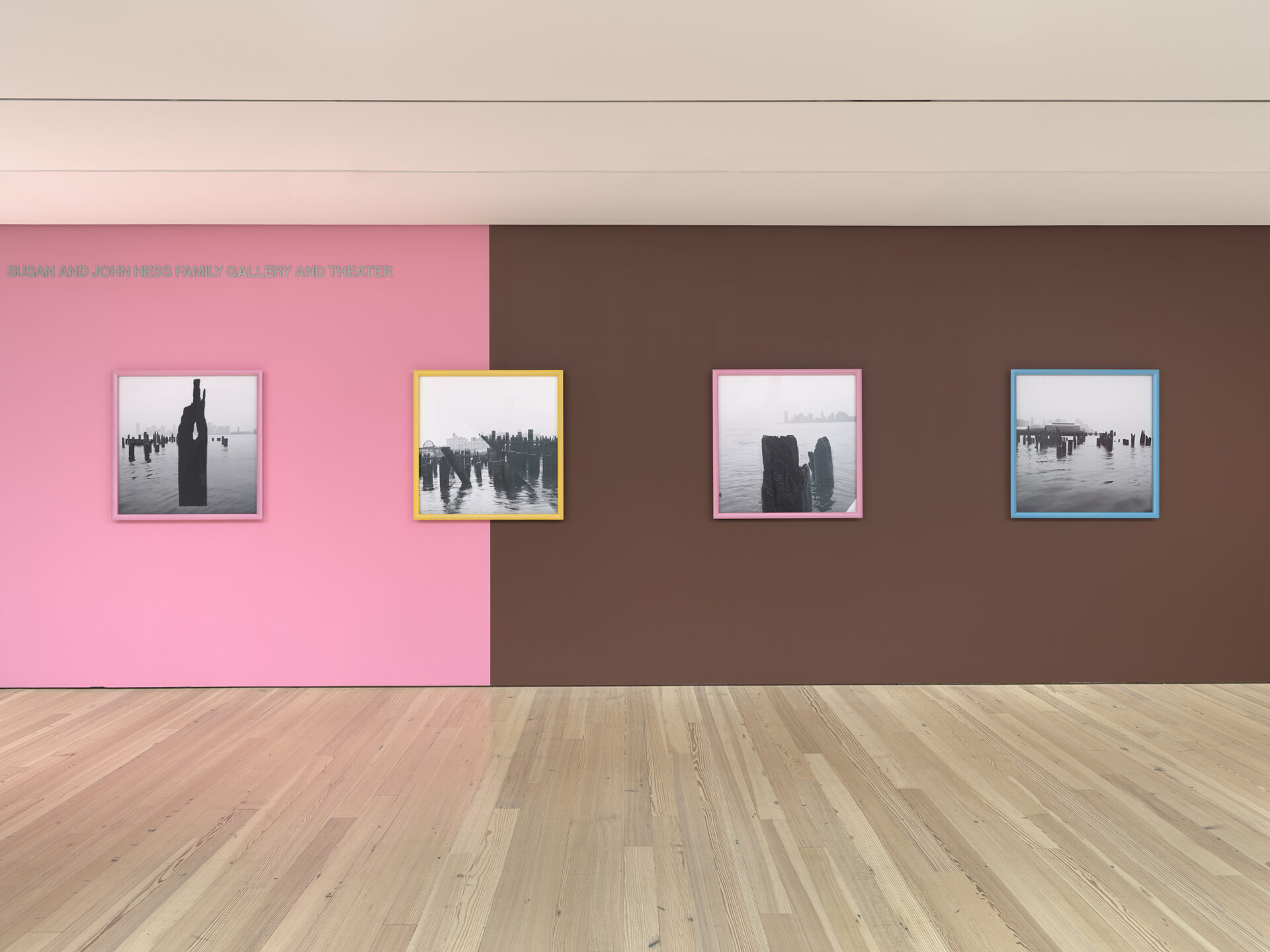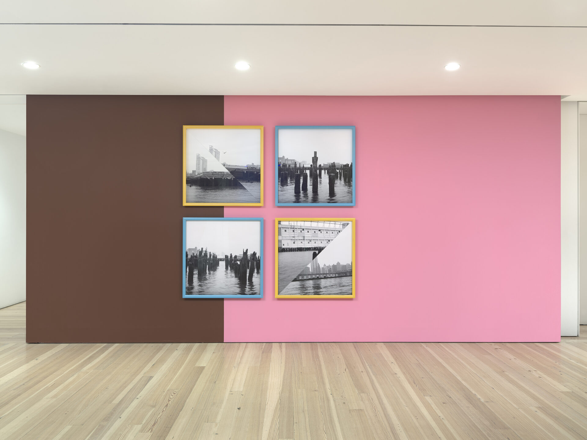 Installation view of Every Ocean Hughes: Alive Side (Whitney Museum of American Art, New York, January 14, 2023- April 2, 2023). Clockwise from top left: The Piers Untitled (#12 collaged), 2009-23; The Piers Untitled (#9), 2009-23; The Piers Untitled (#14 collaged), 2009-23; The Piers Untitled (#4), 2009-23. Photograph by Ron Amstutz