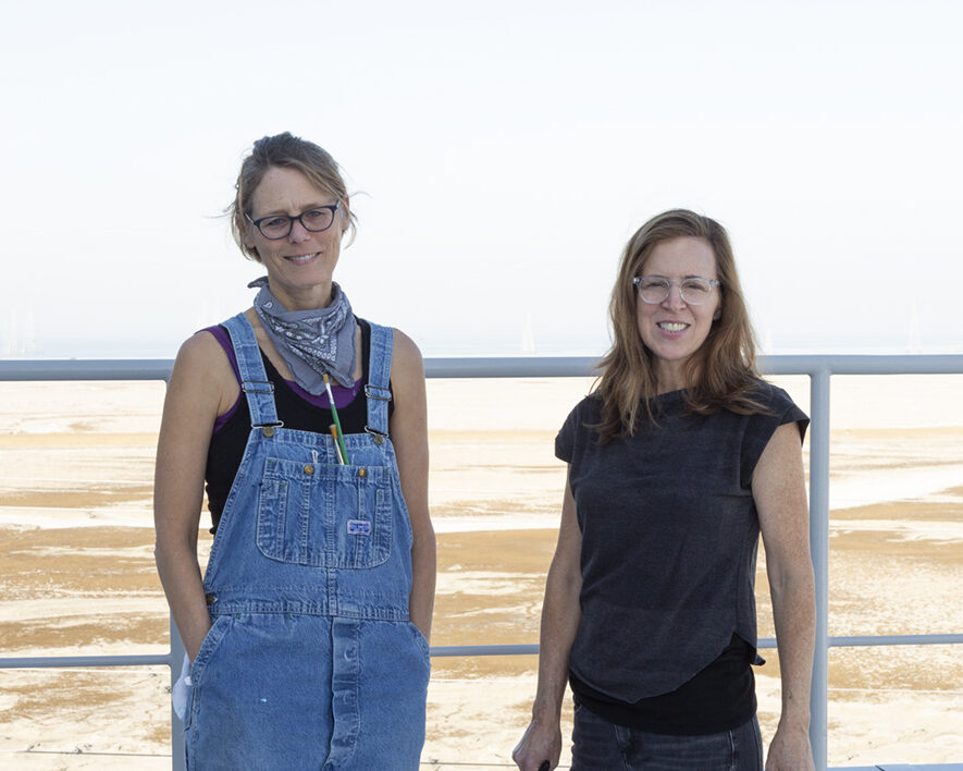 Hughen/Starkweather is the collaboration of artists Jennifer Starkweather and Amanda Hughen, who have worked as a team since 2006. Their collaboration was sparked when they had studios across the hall from each other at Headlands. For the past several years their practice has centered on the impacts of climate disruption on places where land meets water, including rivers, rain, ice, aquifers, oceans, floods, and drought. They are specifically interested in engineered infrastructures interwoven with natural ecosystems in the landscape, and how these increasingly fragile systems might fail or succeed together.