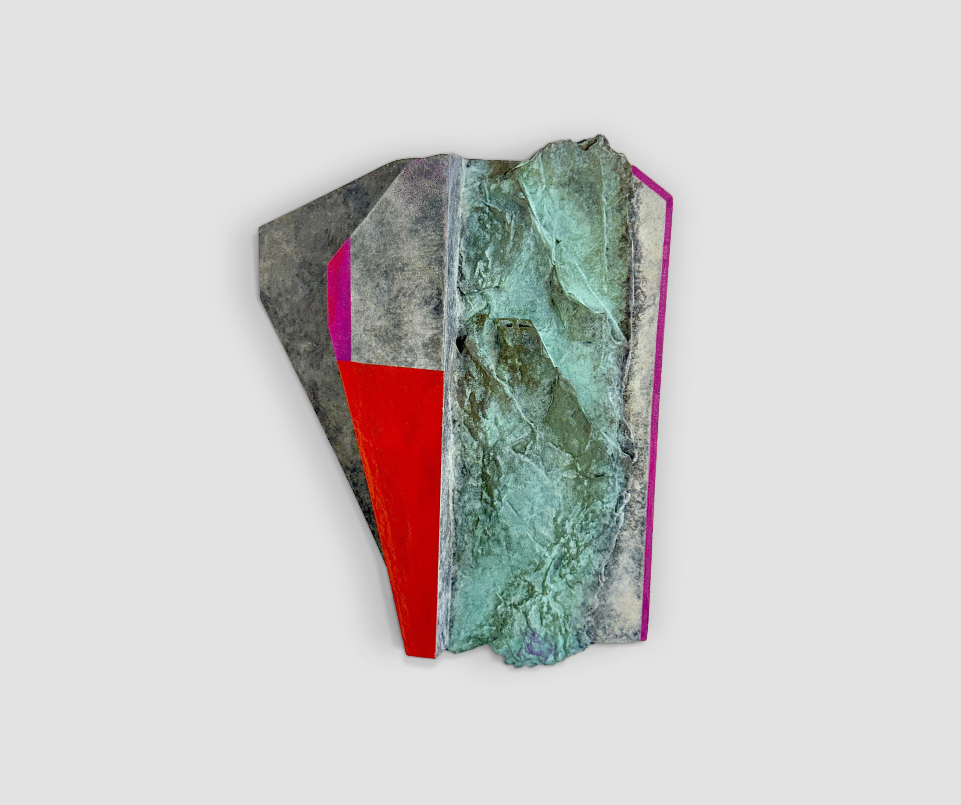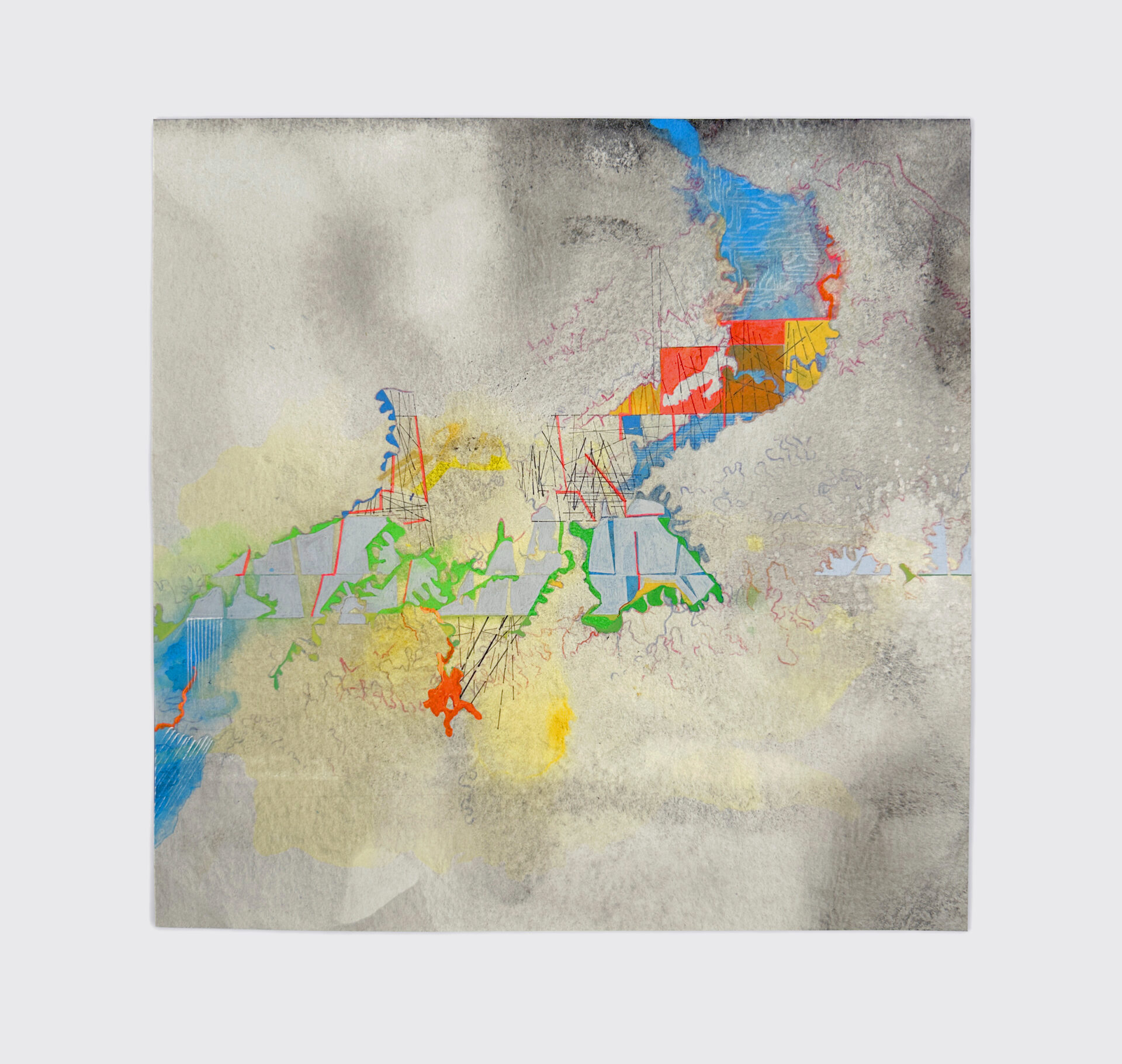 Their research-intensive process includes interviewing scientists and community members; visiting infrastructures and archives; reading articles, books, and oral histories; and looking at data trajectories and possible futures. The artists make site visits throughout California and the American West to collect water from rivers and bays, ash from wildfires, sand from deserts and beaches, as well as natural salts, borax, and dirt, and use these materials directly in the artworks. The resulting paintings, sculptures, and videos evoke a sense of a place in transition, layering past, present, and future through forms referencing topographies, landforms, waterways, and infrastructures. By allowing the artworks to resonate with the collected data and materials, Hughen/Starkweather hope to prompt curiosity, uncertainty, and new perspectives in the viewer. The work reflects the ambiguities and complexities of our time, while offering glimpses of hope and beauty amidst destruction.