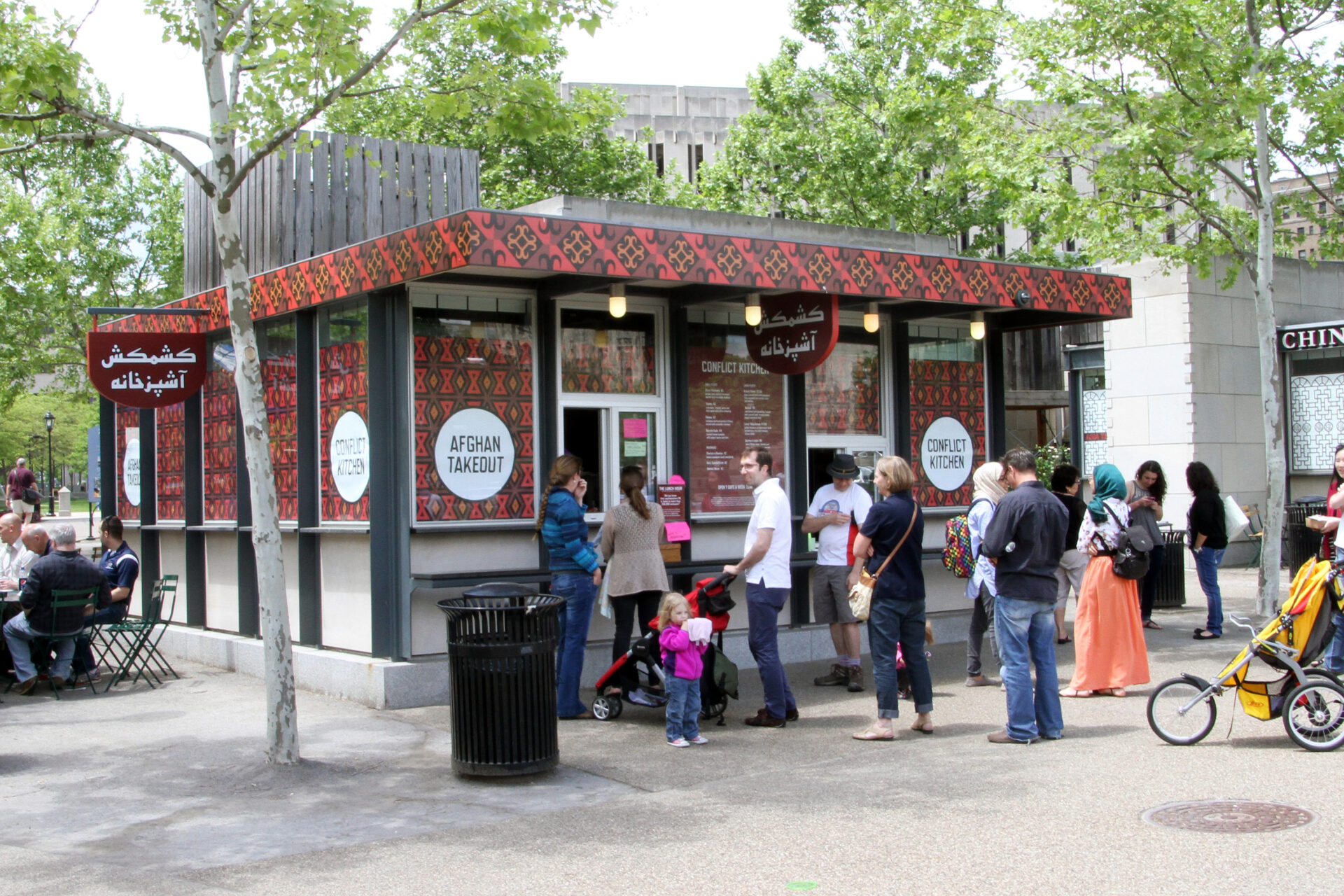 Conflict Kitchen, Pittsburgh, PA, 2010-17, Team: Jon Rubin and Dawn Weleski (co-directors), Robert Sayre (culinary director), Brett Yasko (lead designer). Collaborators: Afghan, African American, Black, Cuban, Iranian, North Korean, Venezuelan, Palestinian, and Haudenosaunee communities in Pittsburgh and their world-wide diaspora.