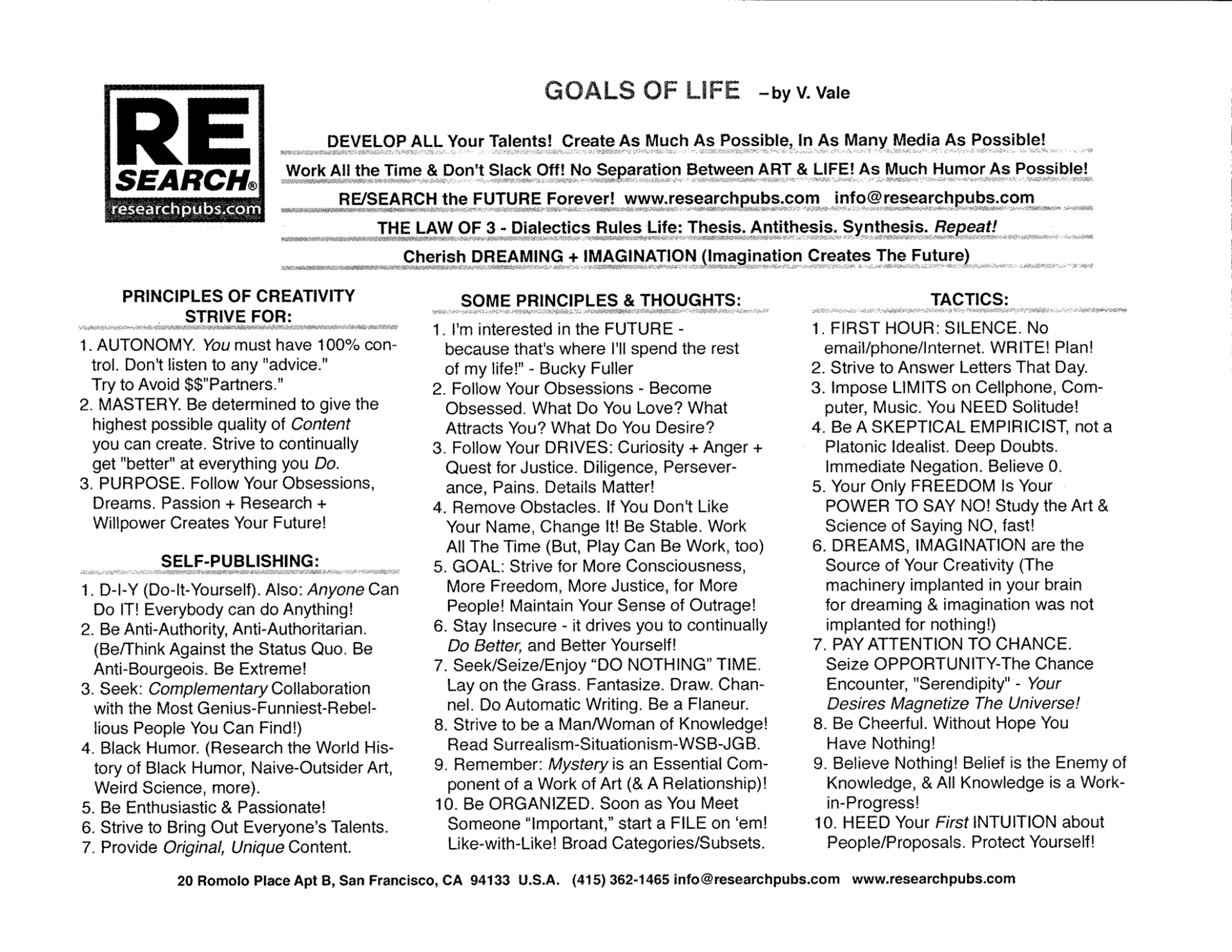 We will continue our Search for Weird, crafting a graphic narrative that reflects the kaleidoscopic journey of V Vale of RE/Search Publications. We will spelunk through Vale’s archive of personal photographs, publications and ephemera to chart his singular life: from his birth in a Japanese internment camp in Arkansas to his “rebirth” as a trailblazing punk publisher in 1970s North Beach, to our serendipitous meeting in 2013 as fellow members of the DIY art and music scene. We will spend our time remembering, researching, drawing and cataloguing to create the final framework for a unique sequential portrait that will balance archival accuracy with conversational effervescence and graphic experimentation. We look forward to building new relationships with the artists-in-residence and staff amidst the tranquil landscape of the headlands, and looking out over the water onto the Bay Area in all its bizarro majesty.
