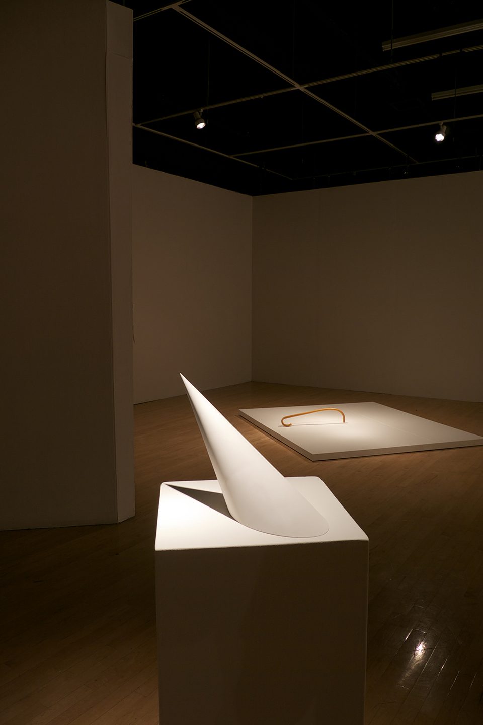 Sculpture came out of dance. Objects are formed as ensembles. Currently I am making sculptures which appear to have the purpose of supporting a body or action. Minimal in form and material, the sculptures are familiar, like shapes in the background. A cane, a stage, an arch, a staircase, a trap door….