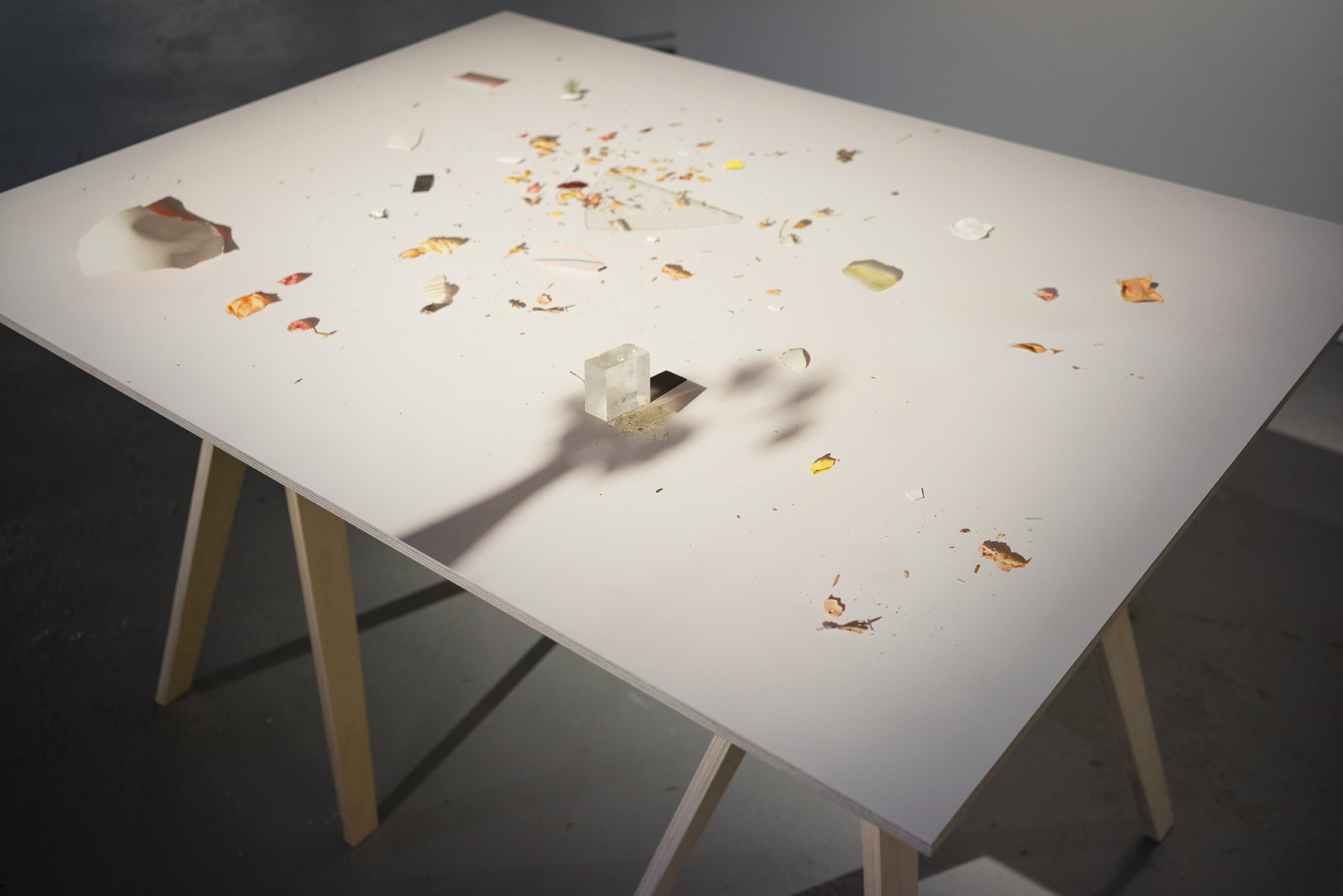 I am an artist working with photography, sculpture, drawing, and collage. In response to observations of light and form, I engage in a sensory practice deeply influenced by the environments in which I work. In the landscape and my studio, I create arrangements using common materials like paper, plants, and rocks. These compositions depend on the interaction between objects, color, sunlight, and shadows, revealing something elemental and transitory about a time and a place.
