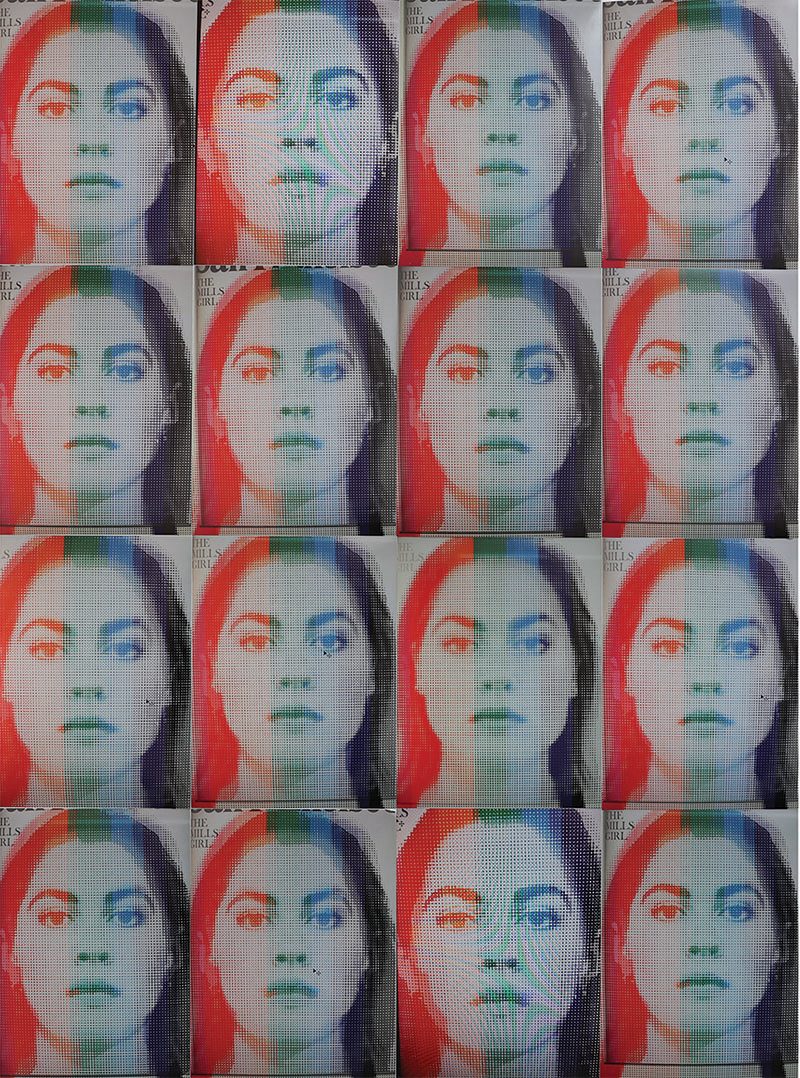 A portrait of a person in front of a photograph.
