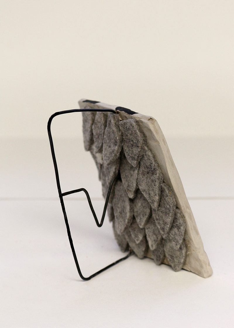 I build my work using visceral materials to communicate in body-based terms like weight, texture, temperature, scent, and sound reflection. Crafted using materials such as industrial felt, wood, clay, lead, steel, and wool, each sculpture offers a direct, physical encounter. My interspecies artworks investigate human-animal kinship and the body’s central role in that inquiry. These sculptures take aim at human exceptionalism—I want to shake up this long-standing socio-political hierarchy as part of an ongoing fight for all differently bodied lives’ right to be. Most recently, I have been exploring the diagonal as a literal manifestation of queer politics. I imagine my diagonal, leaning material-bodies as forming a sculptural field of resistance to the straight, right angles of the normative world. I hope this encounter leaves a viewer more physically aware of their own body, and through this, raises questions about protection, presence, normativity, collaboration, intelligence, resistance, and action.